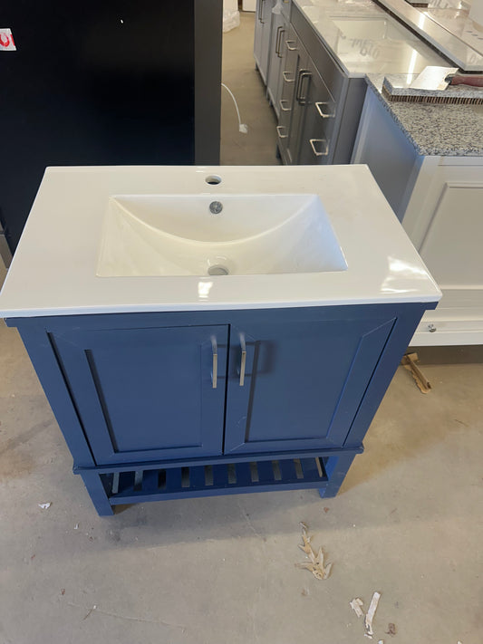 30 in. Single Sink Midnight Blue Bath Vanity /White Engineered Stone Top with