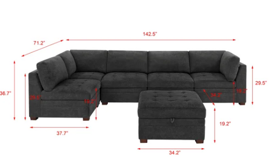 Thomasville Tisdale Modular Sectional 6-piece Dark Gray with Storage Ottoman
